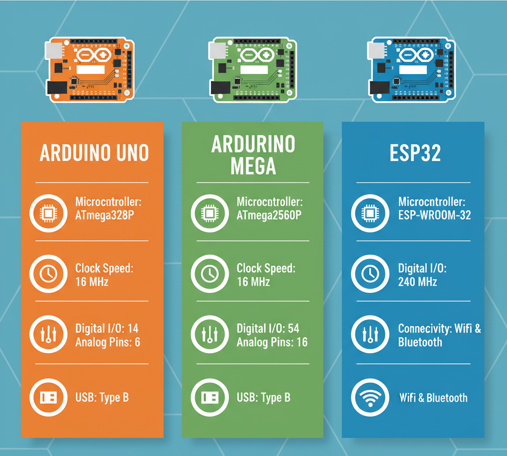 Comparison: ESP32 vs Arduino Uno vs Arduino Mega