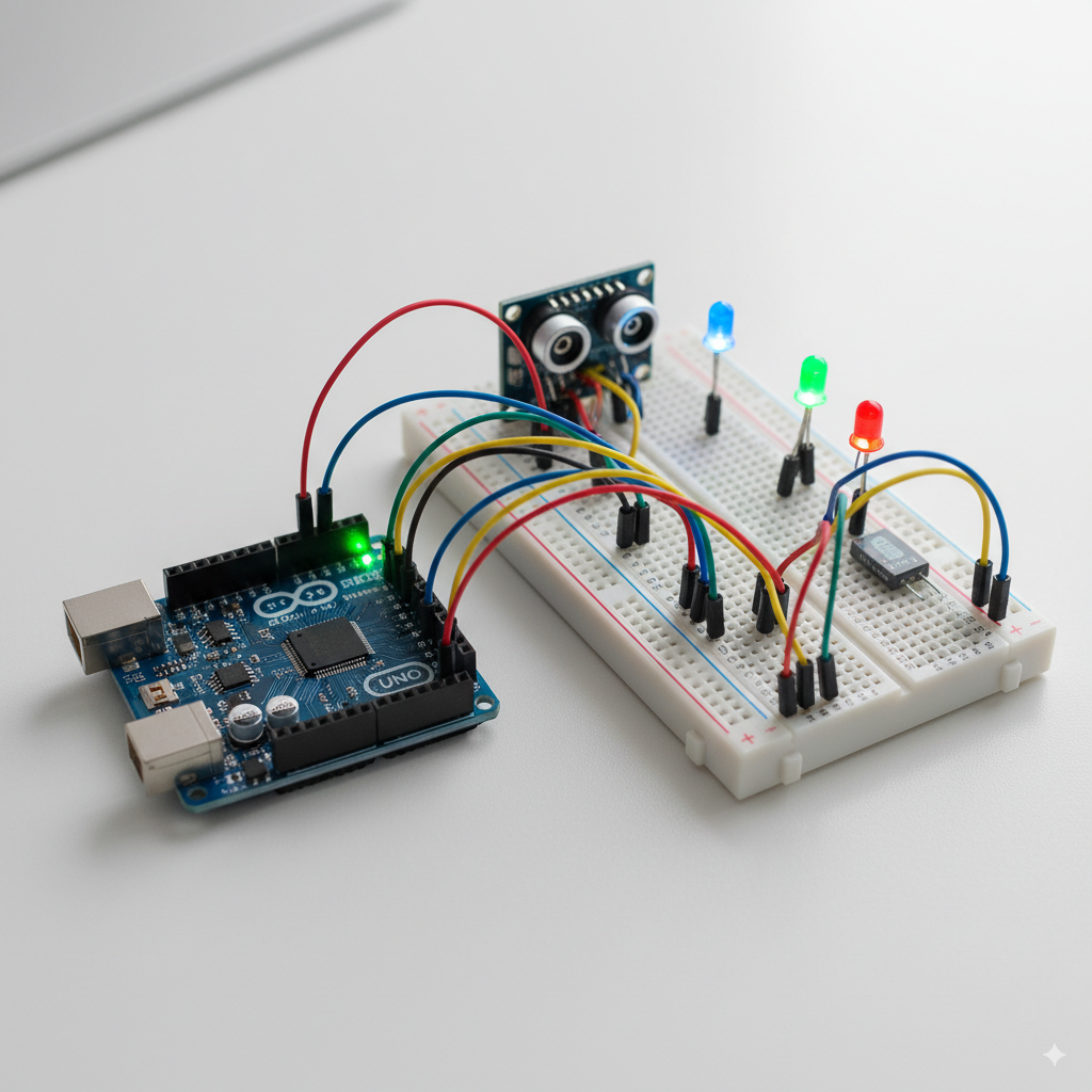 Ultrasonic Distance Meter – Measure distance using an ultrasonic sensor and display results.