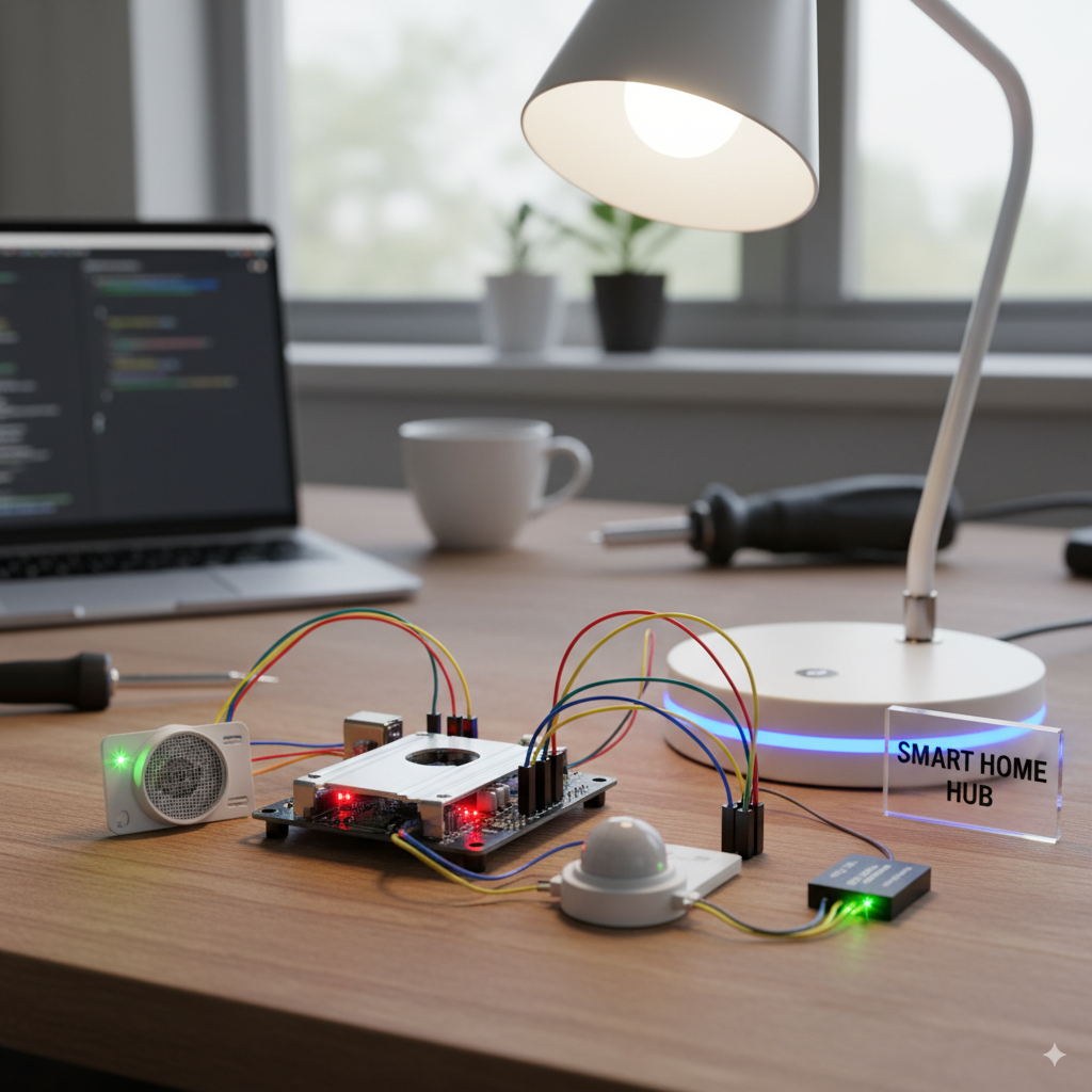 Example Project: A voice-controlled home automation system with Alexa or Google Assistant.