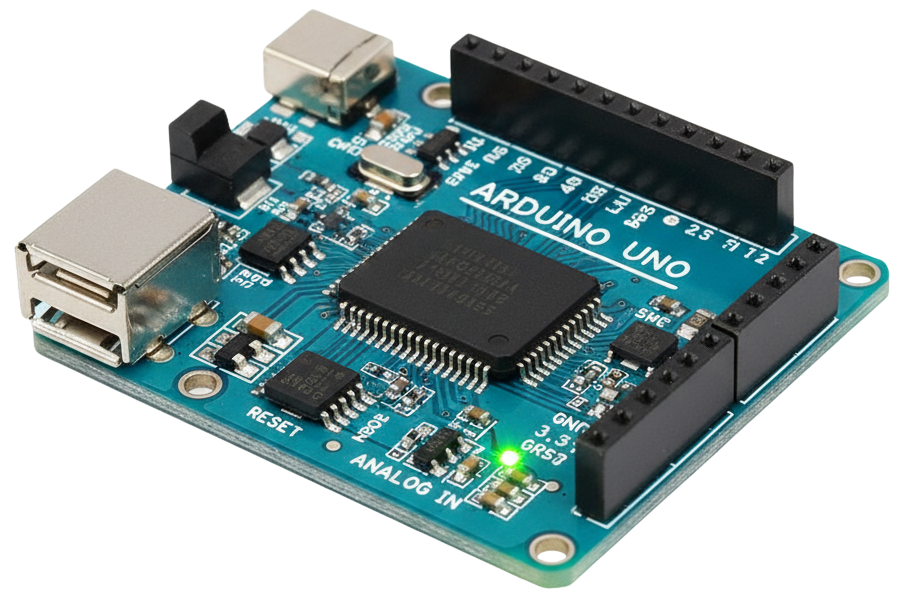 The Arduino Uno is the most popular and beginner-friendly board in the Arduino family. Affordable, reliable, and easy to use, it’s often the very first board that hobbyists and students work with. Equipped with an ATmega328P microcontroller running at 16 MHz, the Uno features 14 digital I/O pins, 6 analog inputs, and a standard USB Type-B connection.