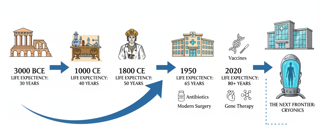 Picture this: You close your eyes for what seems like a moment. When you open them again, it’s 200 years in the future. Your disease? Cured decades ago. Your youth? Restored by medical tech we can barely imagine today.