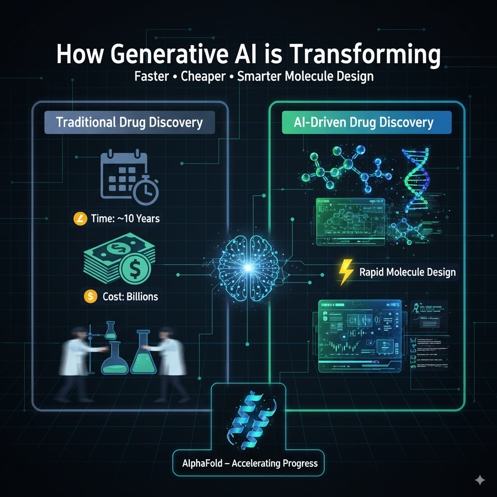 Drug discovery is traditionally a slow and expensive process, often taking ten years and billions of dollars to develop new treatments. With generative AI, researchers can rapidly design novel molecules using vast chemical and biological datasets. AI models like DeepMind’s AlphaFold have demonstrated accelerated progress, reducing candidate pools and costs. Learn more about AI in healthcare drug discovery.