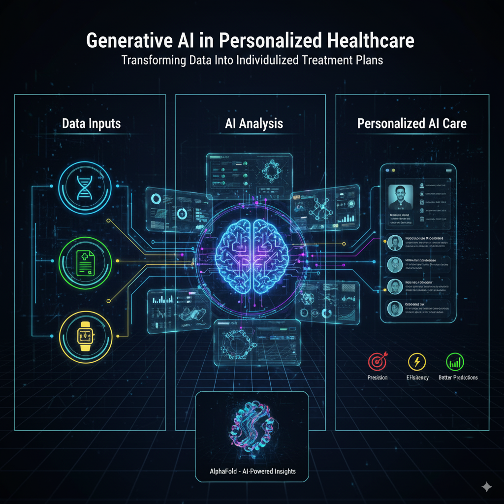 Generative AI models analyze genetic information, medical records, and lifestyle data to recommend individualized treatments. For example, AI-generated cancer treatment plans offer better predictions for each patient’s unique needs. Personalized care powered by generative AI is revolutionizing outcomes and empowering doctors to make data-driven decisions.